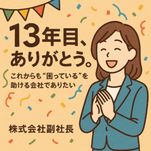 気づけば2025年11月1日で、株式会社副社長は13年目を迎えることができました。